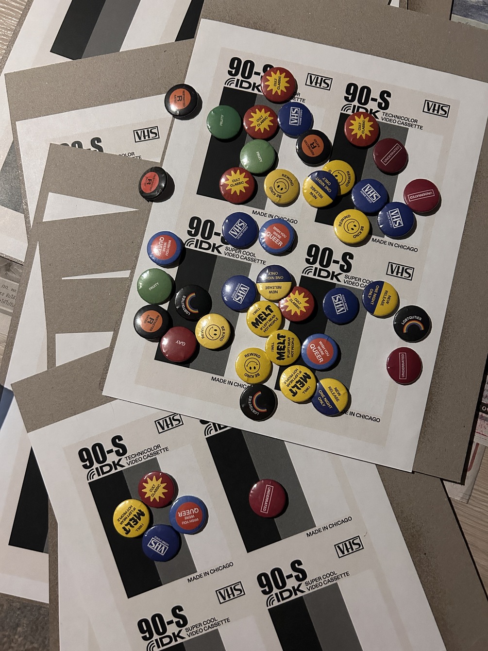 90s VHS themed buttons were created to spread gay energy during the Trump presidency. 100% of the proceeds will be donated to LGBTQIA+ mental health organizations, supporting our community during these challenging times. made to spread the gay energy during trump presidency, 100% money made from this buttons will be donate to LGBTQIA+ mental health organizaiton during this depressing time.